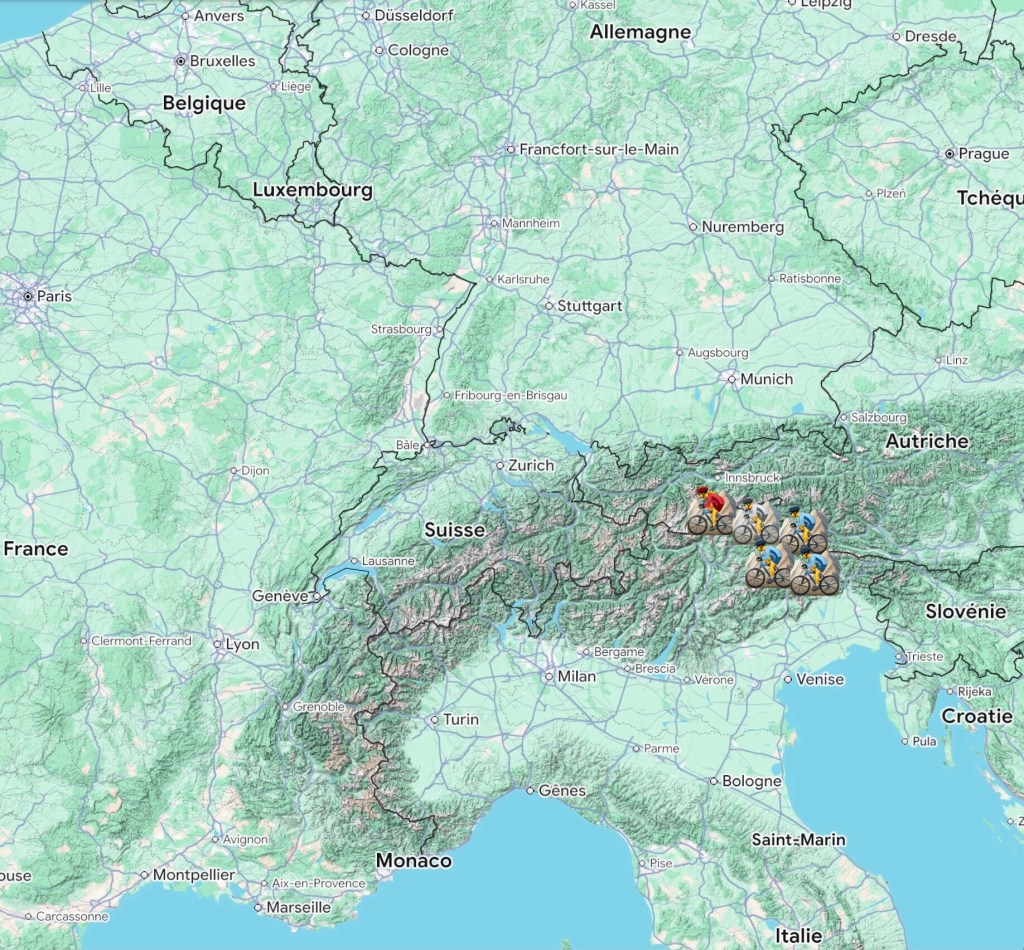 L’anniversaire de Matthieu sonne souvent la fin de nos voyages à vélo. Cette année, nous terminons notre tour des montagnes germano-austro-italiennes une journée avant les 14 ans de notre petit devenu bien grand. Des sommets pleins les yeux, des mollets bien affûtés et un petit morceau de dent laissé en souvenir dans les Dolomites, nous repartons à nouveau enchantés par ce voyage à cinq.
